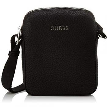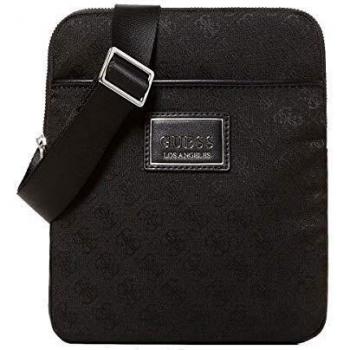 Guess Men's Dan 4g Embossed Flat Shoulder Bag, Black, 2x23x19 Centimeters