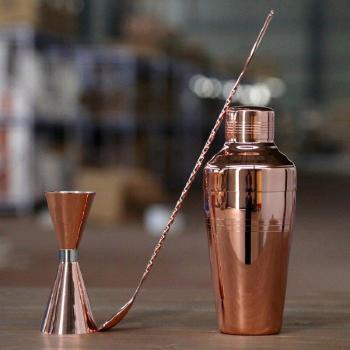 Barware Set - Copper Plated Cocktail Shaker - 3 Pieces
