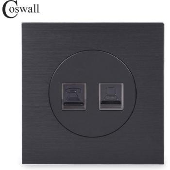 Coswall CAT5E RJ45 Aluminum Brushed Panel Wall Data Socket Knight Black