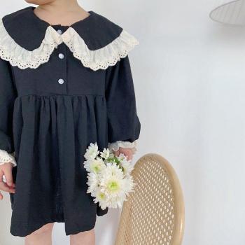 Spring autumn baby girls cotton lacework patchwork dress Korean style girl long sleeve turn-down collar cute dresses