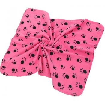 Paw Print Dog and Cat Blanket - Cotton Mat for Small Pets in Grey and Pink