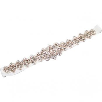 Bridal Crystal Sash - White Satin Belt with Embellishments for Bride and Bridesmaid
