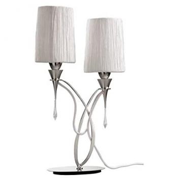 Lucca Table Lamp 2 Light E27, Polished Chrome With White Shades & Clear Crystal