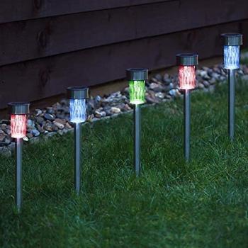 0 x CUQOO Color Changing Solar Garden Stake Lights - Rechargeable LED Solar Powered Garden Lights - Waterproof Outdoor Lamps - Stainless Steel Outdoor Solar Lights for Garden, Pathway Lighting