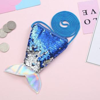 Kid Girl Colorful Change Sequin Mermaid Tail Messenger Bag Children Cute Zipper PU Small Handbag Style