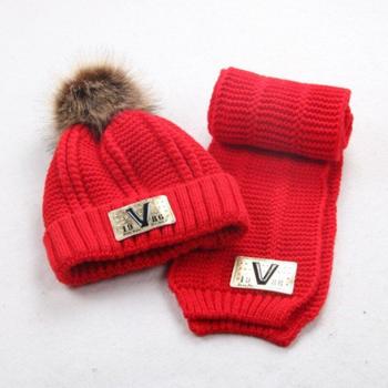 Warm Wool Knitted Cap and Scarf for Children
