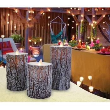 Moving Dancing Swinging wick LED Pine Bark tree Candle Paraffin Wax Wedding Bar Home Party Lighting Decor Dia.7.5cm-Amber