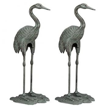 Set of 2 Green Weatherproof Garden Crane Statues, Cast Iron, 72 x 32 x 22 cm