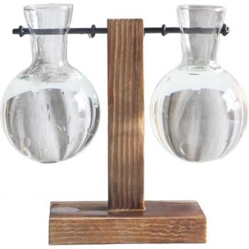 Wooden Stand Glass Planter for Hydroponic Bulbs