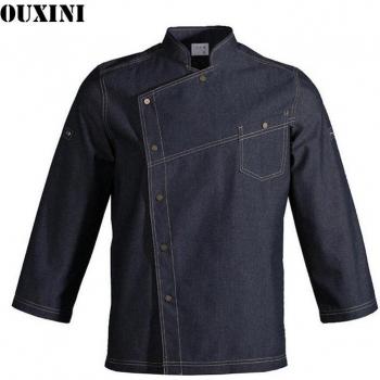 Denim Fabric Chef Jackets restaurant uniforms shirts long sleeves restaurant uniform chef clothes hotel uniform chef coat