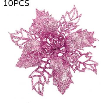 10PCS Christmas Wreath DIY Gold Safflower Leaves with Glitter