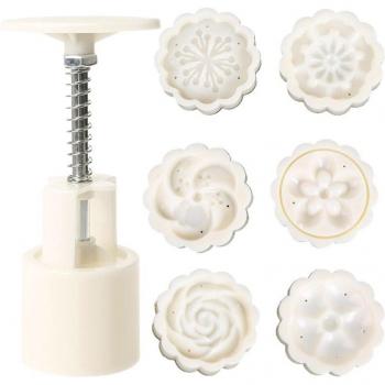 6pcs Round Mooncake Molds with 3D Flower Stamps - 50g DIY Tool