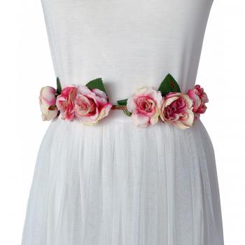 Bridal Waistband with Simulated Rose Flower for Photography and Events