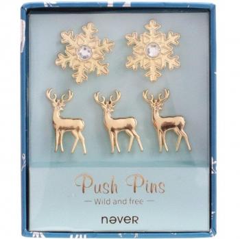 Elk and Snowflakes Push Pins in Rose Gold