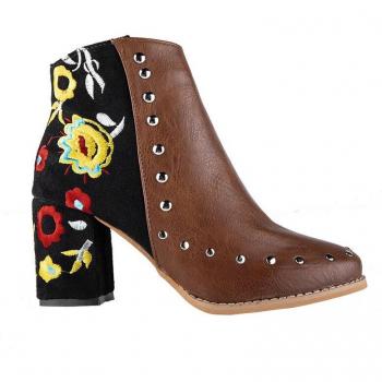 LALA IKAI Women High Ankle Boots with Zipper and Rivet Flower Design