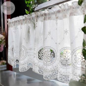Half-curtain White Flower Embroidered Wear Curtain Window Valance Lace Hem Coffee Curtain for Kitchen Cabinet Door