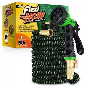 Flexi Hose Expandable Garden Hose - 8 Pattern Spray Nozzle - Heavy Duty Brass Connectors - Tangle-Free Water Hose for Spring/Summer (Green/Black, 30 Meters)