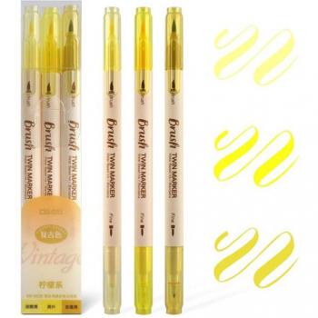 EZONE 3pcs Color Twin Marker Pens Set Student Stationery Brush Drawing Fine Liner Water Based Ink Watercolor Art Painting School