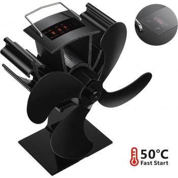 Wood Burner Fan with Thermometer - 4-Blade Silent Heat Powered Accessory
