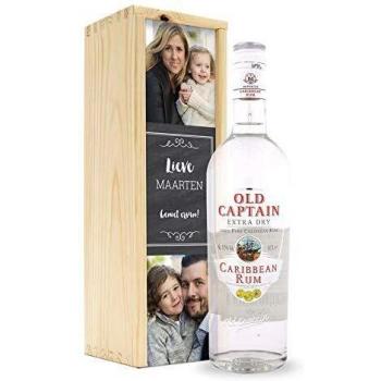 Old Captain White Rum Gift Set - Personalized Wooden Packaging