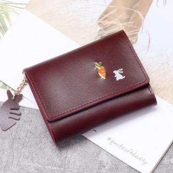 Women Short Wallet Fresh Student Bag Simple Multi-card Seat Buckle Coin Purse Chain Leather Wallets carteira*//