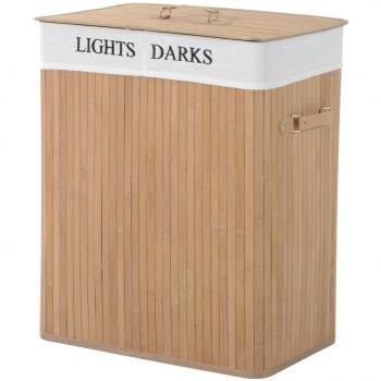 HOMCOM 100L Collapsible Natural Wood Laundry Hamper