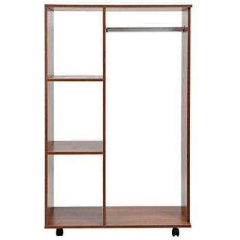 HOMCOM Portable Wardrobe with Hanging Rail and Storage Shelves - Walnut