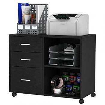Freestanding Printer Stand Cabinet with 3 Drawers and 2 Open Shelves - Black