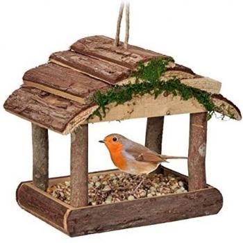 Relaxdays Rustic Wooden Bird Feeder – 19 x 22 x 16.5 cm, Garden Use