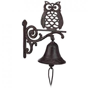 Cast Iron Owl Door Bell - Antique Style, Weatherproof Garden Decoration, Dark Brown