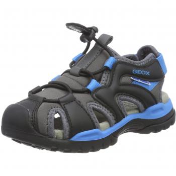 Turquoise Geox J Borealis sandals for girls feature a flexible rubber outsole, airy synthetic upper and lining, and a secure hook‑and‑loop strap that adjusts to fit comfortably while keeping feet cool and dry.