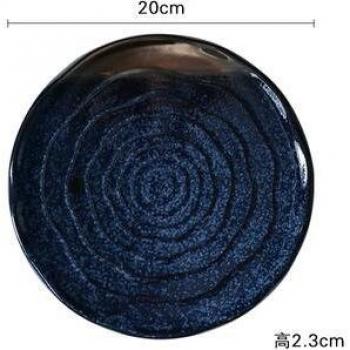 Ceramic Japanese Dining Plate, 8/10" – Blue Glaze, Gold Trim