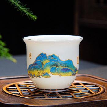 Boutique Handmade Suet jade Ceramic Teacup Travel Personal Meditation Cup Hand-Painted Tea Bowl Pu'er Master Cup Tea Set