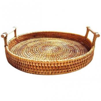 Handwoven Rattan Round Food Storage Tray