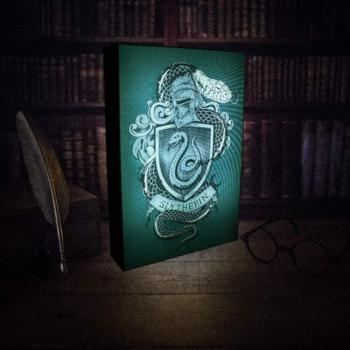 A compact 1.5 cm ballpoint pen showcases the Slytherin crest in green and silver on a polished plastic barrel, offering smooth ink flow and a subtle magical touch for everyday writing.