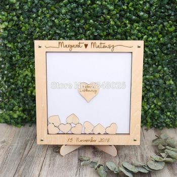 Wooden Wedding Guest Book with Hearts