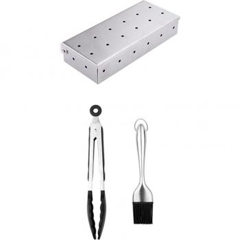 Stainless Steel Smoker Box for Wood Chips, BBQ Grill Accessory with Hinged Lid, Comes with Food Clip and Oil Brush