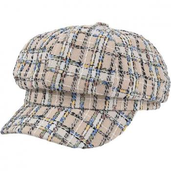 HOAREE Autumn Winter Hats for Women Newsboy Cap White Plaid Ladies Baker Boy Hat Female Brand Vintage Octagonal Cap