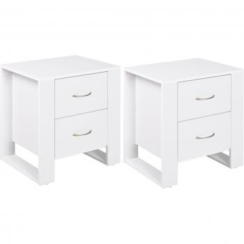 HOMCOM Bedside Cabinet Pair with Dual Drawers, Modern Nightstand, Set of 2, White