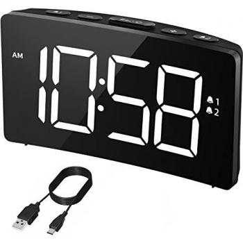 HERMIC Battery Powered Digital Clock with Snooze and Dual Alarms