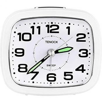 Marathon Mini Travel Alarm Clock - White - No Ticking Sounds - Auto Night Light - Easy to Use - Perfect for Bedside Alarm Clocks - with Snooze Function