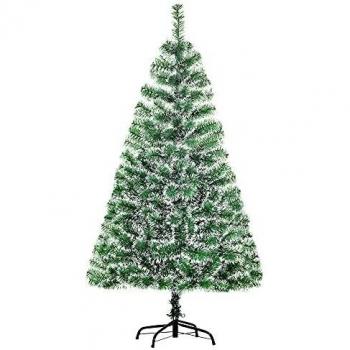 Artificial Christmas Tree 180cm with Metal Stand, PVC/PE Material, Green and White Snow Finish, 705 Tips