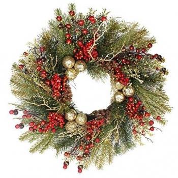 Christmas Wreath and Garland with Baubles and Pinecones - Red/Green
