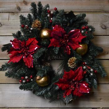 Premier's 60cm Christmas Wreath in Red Poinsettia and Gold Accents