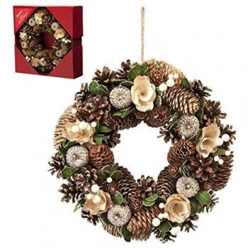Gold Rose and Pine Cone Wreath - 30 x 30 x 8 cm
