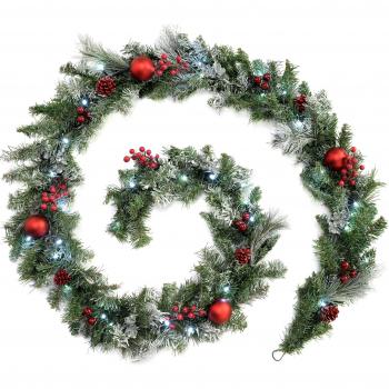 Frosted Decorated Pre-Lit Garland with 40 Cool White LED Lights