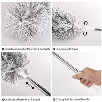 Extendable Microfiber with Extra Long 100 inches Telescopic Pole, Feather