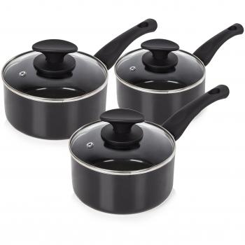 Tower Essentials Pan Set with Non-Stick Ceramic Inner Coating and Glass Lid, 3-Piece