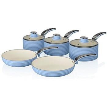 Stylish BLUE Retro 5 Piece Aluminium Saucepan Set by SWAN