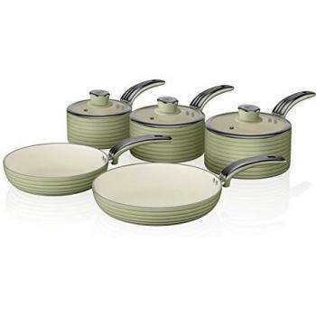 Non Stick Retro Green Cookware Set with Glass Lid